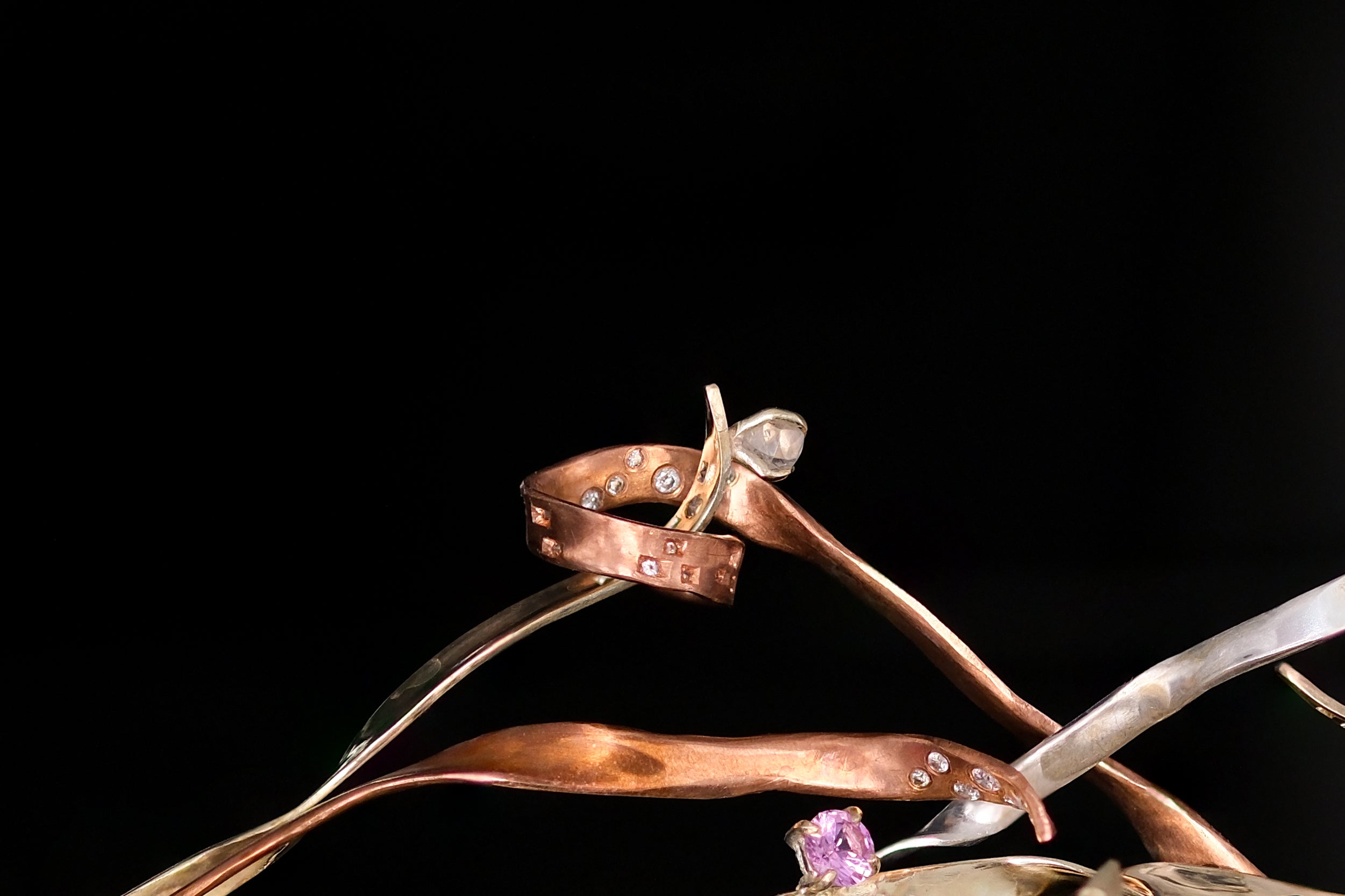 2- Something deep: some souls are bright and endless, they share and communicate their feelings, not through simple words but images. One of our incredible clients sent us a powerful poem as part of the inspiration for jewel, one line read “like the dew from the morning grass, what is ours flows into the air”. This piece had some of the most intricate and delicate meanings I could ever imagine, but, just to unveil one, as delicate elements touched, small diamonds, like morning dew appeared, ready to evaporate, to twist their souls into vapour.